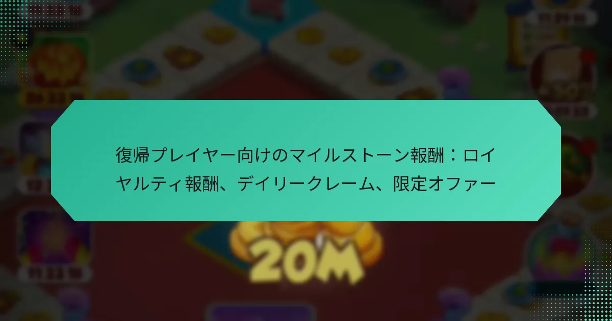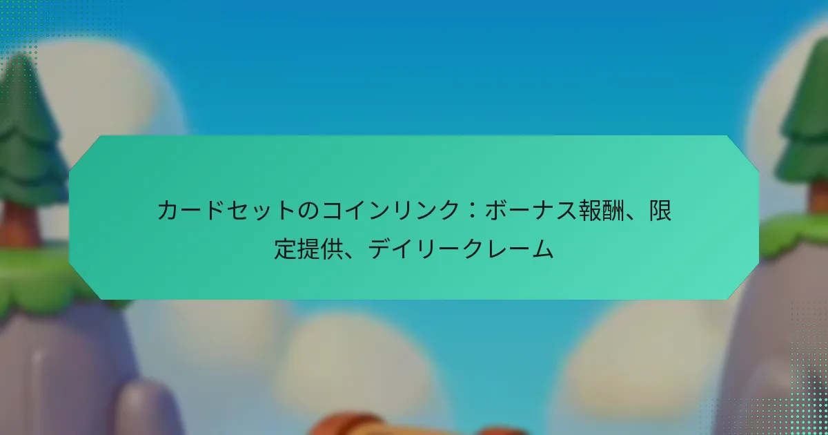 レイド用のコインリンクは、ゲームプレイを向上させる貴重なゲーム内リソースであり、独自の報酬、日々の請求、期間限定オファーへのアクセスを提供します。これらのリンクを利用することで、プレイヤーはレイドのパフォーマンスを大幅に向上させるユニークなアイテムやボーナスを獲得できます。日々のコインリンクを必ず請求して、利益を最大化し、より豊かなゲーム体験を楽しんでください。 レイド用のコインリンクとは? レイド用のコインリンクは、プレイヤーがゲームプレイ体験を向上させるために利用できる特別なゲーム内リソースです。これらのリンクは、レイドのパフォーマンスに大きな影響を与える独自の報酬、日々の請求、期間限定オファーへのアクセスを提供します。 コインリンクの定義と目的 コインリンクは、プレイヤーがゲーム内でさまざまな特典をアンロックするために引き換えられるユニークなデジタルトークンまたはコードです。その主な目的は、ゲームプレイを向上させ、レイド中に戦略的な利点を提供する報酬を提供することで、プレイヤーのエンゲージメントを促進することです。 これらのリンクは、通常のゲームプレイでは簡単には入手できない独自のアイテム、ボーナス、または通貨に繋がることが多いです。コインリンクを使用することで、プレイヤーはレイドで競争優位を得ることができ、ゲームコミュニティにおいて貴重な資産となります。 ゲームプレイにおけるコインリンクの機能 ゲームプレイにおいて、コインリンクはプレイヤーが報酬を受け取るために入力できる引き換え可能なコードとして機能します。通常、プレイヤーはプロモーションイベント、ソーシャルメディア、またはゲーム内アナウンスを通じてこれらのリンクを見つけます。リンクを取得したら、プレイヤーはゲーム内の指定されたエリアに入力して報酬を請求できます。 プレイヤーは、多くのコインリンクが時間制限付きであることを認識しておくべきです。これらは限られた期間のみ有効である場合があるため、迅速に行動することを促し、レイドや他のゲーム活動への参加を増加させることがよくあります。 レイドでコインリンクを使用する利点 ゲームプレイを向上させる独自の報酬へのアクセス。 時間をかけて一貫した利益を提供する日々の請求。 緊急性と興奮を生む期間限定オファー。 レイドパフォーマンスを向上させる戦略的な利点。 レイドでコインリンクを利用することで、プレイヤーの武器庫に大きな改善がもたらされる可能性があります。独自の報酬には、強力な武器、レアアイテム、またはアップグレードに使用できる貴重なゲーム内通貨が含まれることがあります。 日々の請求は定期的なエンゲージメントを促し、プレイヤーがリソースを着実に構築できるようにします。一部のオファーの期間限定性は緊急感を生み出し、プレイヤーがこれらの一時的な機会を利用するためにレイドにより積極的に参加することを促します。 一般的な別名と用語 コインリンクは、さまざまなゲームコミュニティ内で異なる名前で呼ばれることがあります。一般的な別名には「プロモコード」、「引き換えコード」、「報酬リンク」が含まれます。これらの用語を理解することで、プレイヤーは議論やプロモーションをより効果的にナビゲートできます。 さらに、プレイヤーは「独自の報酬」、「日々のボーナス」、「期間限定オファー」といった用語に出会うことがあります。これらの用語に慣れることで、プレイヤーはコミュニティとの関わりを深め、ゲームプレイ体験を最大化することができます。 ゲームにおける文脈的使用 ゲームの文脈において、コインリンクは新しいコンテンツやイベントを促進するために使用されることがよくあります。たとえば、特別なイベント中にコインリンクをリリースして、プレイヤーがレイドに参加し、新しい機能を探索することを促すことがあります。 プレイヤーは、ゲーム内イベントやアップデートに合わせて請求のタイミングを調整することで、コインリンクを戦略的に使用してゲームプレイを向上させることができます。このアプローチにより、これらのリンクから得られる利益を最大化し、レイドや他の挑戦で競争力を維持することができます。 コインリンクを通じて得られる独自の報酬とは? コインリンクは、プレイヤーがゲーム体験を向上させる独自の報酬を獲得する機会を提供します。これらの報酬には、ユニークなゲーム内アイテム、特別なスキン、通常のゲームプレイでは入手できないボーナスが含まれます。 入手可能な独自の報酬の種類 プレイヤーは、コインリンクを通じてさまざまな独自の報酬を獲得でき、これによりゲームプレイやカスタマイズが大幅に向上します。一般的な報酬の種類には: キャラクターの外見を変えるユニークなスキンや衣装。 追加のゲーム内購入力を提供する特別な通貨ボーナス。 特定のイベ